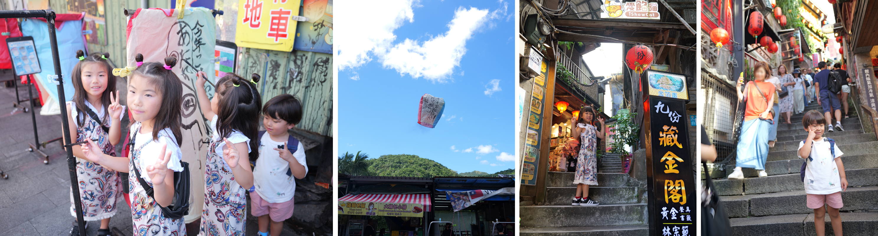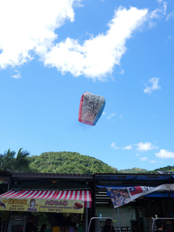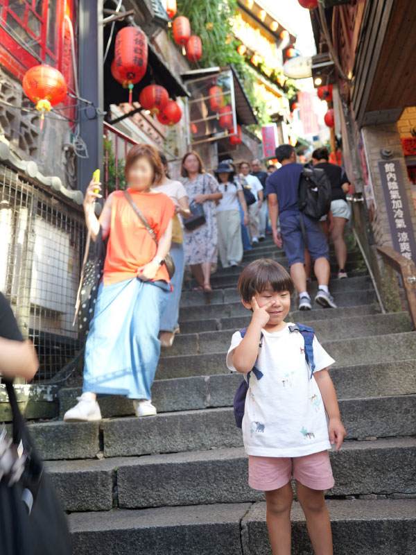 そこで九份と十份に行きました。十份ではランタン飛ばしをしました。大きなランタンに想いを書いて、それをまさに気球のように飛ばす。青空に高く飛ぶランタンがめっちゃキレイでした。その後、九份へ。九份は千と千尋の神隠しのモデルと噂される場所です。日中に出かけたので、夜の幻想的な雰囲気はありませんでしたが、それでも非常に魅力的な場所でした。子供達は一日中歩いていましたし、暑かったのでバテていました。でもよく付き合ってくれました。移動がほとんどの台湾旅行になり、はたして小さな子供達の記憶にどの程度残ってくれるのか分かりませんが、親としては楽しい時間を送ることが出来ました。