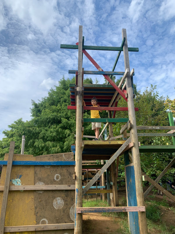 そこでは子供が主役であり、子供自身の「やってみたい」という気持ちを大切にしている公園です。大きな土地のなかに手作りのジャングルジムみたいなものあり、土管が何本も張り巡らされた秘密基地みたいなものもあり、さらに土や水を使って泥だらけになって遊んでいます。今どき、このような公園があるんだとちょっとびっくりしました。子供達が無我夢中で遊びまくり、走りまくり、泥だらけになりまくっています。もちろん静かに遊びたい子供達用の部屋もあります。我が家の子供達は外で遊びたい派。とにかくいろいろ楽しめる道具がいっぱい。最初にジャングルジムで遊んで、その後は土管をくぐり回って、土と水で泥遊び。おにぎりを食べて、昼休み。その後は大きなネットでびょんびょん飛んで、バスケをして、スケボー乗って、いろいろ楽しんでいました。泥だらけになって、夢中で遊びまくって、とても楽しく疲れた1日になりました。このような場所があるのは良いですね。子供の自主性に任せて、何をやっても構わない。いろいろ考えて、どのようにしたら楽しめるのか、どのようなものができるのか。一方で何をしたら危ないのか、人に迷惑がかかるのか、いろいろ学べる気がします。楽しい場所だったので、また時間をみつけて来ようと思います。