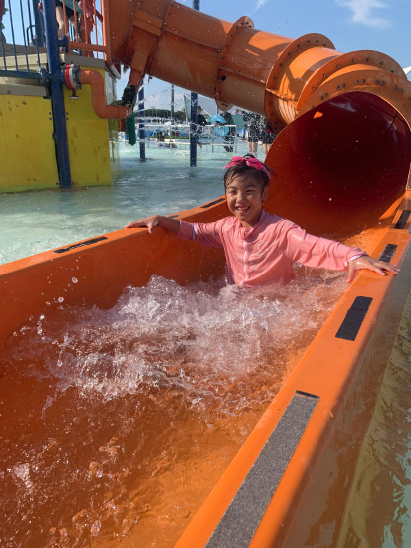 こともあり、時間を見つけて近所のプールに行くことにしました。日程調整も出来たので、娘達のお友達家族と出かけたのですが、天気も良くて、それは楽しい時間を過ごしていました。自宅のプールでも楽しんでくれる子供達ですが、やはり大きなプールの方が楽しいですよね。流れるプールもあるし、波のプールもあって。ウォータースライダーもいろいろ種類があります。それにお友達も一緒ですから、それはそれは盛り上がります。泳ぎに行くのもお友達と一緒、お昼ご飯もおやつタイムもお友達と一緒。天気も暑かったのですが、そこまでずっと日差しが強かったわけではなかったので良い感じでした。子供も大人も大満足。ナイトプールもあったのですが、この日はちょうど夕方で終わりの日で、朝10時から始まり夕方5時までみっちり楽しむことが出来ました。自分もこんなにプールにいたことがなかったので、楽しかったですし、疲れました。
