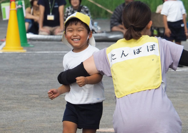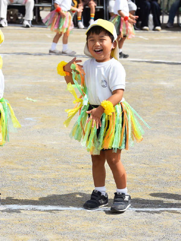 運動会当日、この季節にしては暑かったのですが、快晴で運動会日和でした。年少さんの最初の競技は玉入れ。年少さん対年中さんの対決です。列になってかごのあるところまで一目散に走って行くのですが、長男は最初間違って年中さんのかごに向かって走って行きました。かごに向かって、一生懸命、沢山、玉を入れていました。2回行い、2回とも大差で年少さんの勝ち!長男は笑顔で喜んでいました。次はかけっこ。2人一組で競争です。相手は女の子です。この時期は女の子の方が、背が高いこともありますし、いかんせん我が家の長男、ちょっとわがままボディなので、早く走れるのか?心配でした。いつもの走っている様子を見ても、決して格好の良いランニングフォームではなかったので。本番のかけっこの様子を見ていると、意外や意外。結構格好の良いランニングフォームではありませんか。わがままボディは急に変わりませんが、本人も満足いく走りだったのか、笑顔が絶えませんでした。