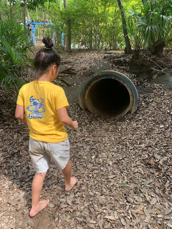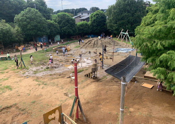 そこでは子供が主役であり、子供自身の「やってみたい」という気持ちを大切にしている公園です。大きな土地のなかに手作りのジャングルジムみたいなものあり、土管が何本も張り巡らされた秘密基地みたいなものもあり、さらに土や水を使って泥だらけになって遊んでいます。今どき、このような公園があるんだとちょっとびっくりしました。子供達が無我夢中で遊びまくり、走りまくり、泥だらけになりまくっています。もちろん静かに遊びたい子供達用の部屋もあります。我が家の子供達は外で遊びたい派。とにかくいろいろ楽しめる道具がいっぱい。最初にジャングルジムで遊んで、その後は土管をくぐり回って、土と水で泥遊び。おにぎりを食べて、昼休み。その後は大きなネットでびょんびょん飛んで、バスケをして、スケボー乗って、いろいろ楽しんでいました。泥だらけになって、夢中で遊びまくって、とても楽しく疲れた1日になりました。このような場所があるのは良いですね。子供の自主性に任せて、何をやっても構わない。いろいろ考えて、どのようにしたら楽しめるのか、どのようなものができるのか。一方で何をしたら危ないのか、人に迷惑がかかるのか、いろいろ学べる気がします。楽しい場所だったので、また時間をみつけて来ようと思います。